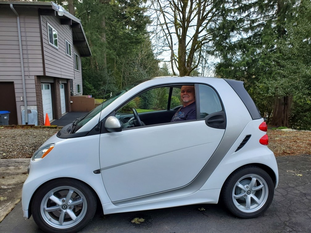 2015 Smart fortwo. It is the only car that is short enough to fit sideways on the back of the truck. It has grown on David as he has used it the last couple of years for commuting to/from work. Kim still does not like the car but over time she may change her mind (doubtful). It only fits two, just like the model name implies and has a little room in the back for wine, beer, and groceries.